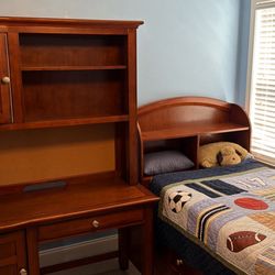 Vintage Desk Hutch With 3 Drawers And Small Pull Out Desk And Queen Size Metal And Wood Bed frame $150Charlotte, NC