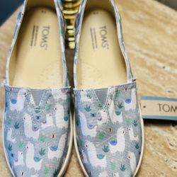 Toms Youth 4 Belmont Slip-On Flats Shoes Grey Lovable Llama Printed Canvas NEW$10Mooresville, NC