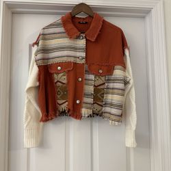 Miss Me Women’s Patchwork Tweed Knit Jacket Shacket Fringe Detail Size Small$20Charlotte, NC
