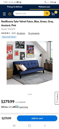 New in box moder futon sofa blue velvet see pictures for dimensions$320Charlotte, NC