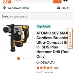 DEWALT 20V MAX (1 in) SDS Rotary Hammer Drill, Cordless + 3ah battery$230Charlotte, NC