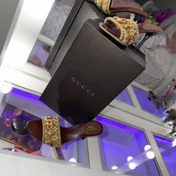 Pineapple Gucci Tan And Gold Embellished Slides$350Kannapolis, NC