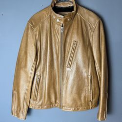 Tommy Hilfiger Men’s L Genuine Leather Moto Jacket Caramel Brown Faux Fur Liner$100Charlotte, NC