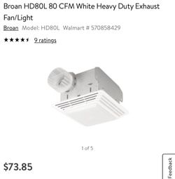 Broan HD80L 80 CFM White Heavy Duty Exhaust Fan/Light$55Concord, NC
