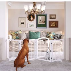JSB 96-inch Extra Wide 30-inch Tall Dog gate with Door Walk Through, Freestanding Pet Gate for Halls, Stairs & Home, Pet Puppy Safety Dog Fence with 2$60Charlotte, NC