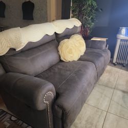 Hammer mill soft Suede Brown Sofa With Glass top Table- DELIVERY AVAILABLE $220Charlotte, NC