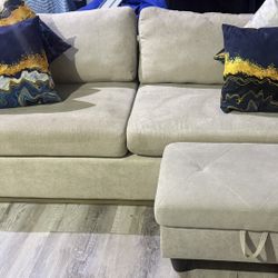 Beige Woven Wool Sofa & Storage Ottoman With Wood Base- DELIVERY AVAILABLE $250Charlotte, NC