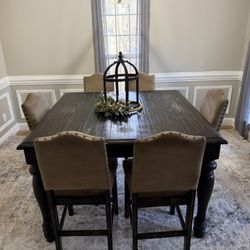 Dark brown counter height table and 4 chairs$175Huntersville, NC