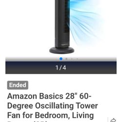 Amazon Basics 28" 60-Degree Oscillating Tower Fan for Bedroom, Living Room, Office, With 3 Speeds $15Charlotte, NC