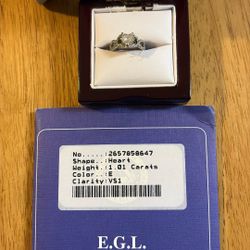 Ladies 18 Karat White Gold Engagement Ring 1.01 Carat Heart Shape Diamond $4,000Charlotte, NC