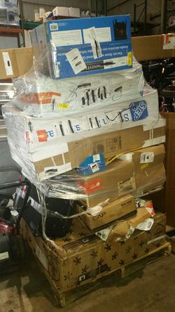 General merchandise pallets with pet cage children's items weight suitcase Electric stove fireplace and more$600Concord, NC