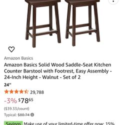Set of Walnut Finish Wooden 24” Bar Stools $63Charlotte, NC