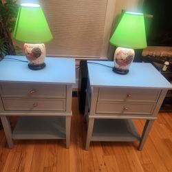 Beautiful Carolina Blue Wood Side Tables or Night Stands w/ Free Lamps - $200 for pair - Rougemont$200Rougemont, NC
