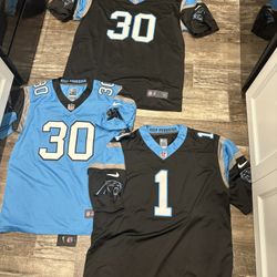 Carolina Panthers Chuba Hubbard/cam Newton( Sizes Below) Black And Blue Football Jerseys $30Raleigh, NC