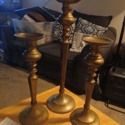 3 Brass Candle Holders 1 Is 14 Half Tall 2 Is 7in Tall $100Raleigh, NC