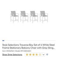 Style Selections Traverse Bay Set of 4 White Steel Frame Stationary Balcony Chair with Gray Sling Seat Item #(contact info removed) | Model #FCS80452H$250Youngsville, NC