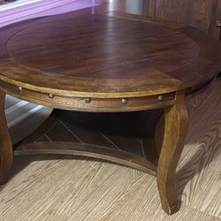 Round Wood And Glass Coffee Table With Shelves$150Chapel Hill, NC