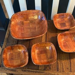 Vintage Parquet Woven Wooden Bowls Salad Snack Serving 5 Piece Set Mid-Century$20Youngsville, NC