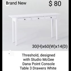 Brand New Threshold & Studio Mc Gee Dana Point Console Table White With 3 Drawers $80Raleigh, NC