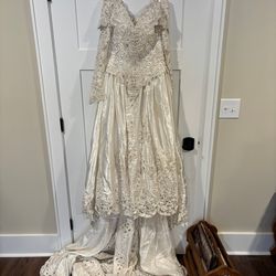 Vintage 80s HelenFreeds Ivory Heavily Beaded Long Sleeve Cathedrel Wedding Gown$300Fayetteville, NC