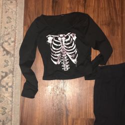 Edgy, Small long sleeve fitted, Black flare leggings Small$4Raeford, NC