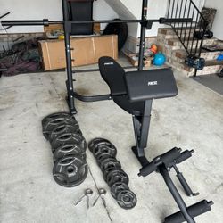 Olympic Squat Rack Cage/Pull ups/Storage Weight Pegs/Bench/240 LBS Olympic Plates/45 LB Bar $600Hope Mills, NC