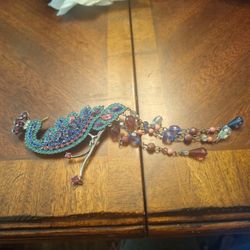 Avon Silver Tone Peacock Rhinestone And Beaded Dangle Brooch$65Raeford, NC
