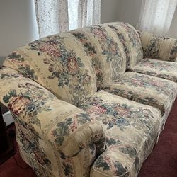 Classic Round Dining Table,,4 Gold And Green Metal Chairs With Deep Cushion$80Lillington, NC