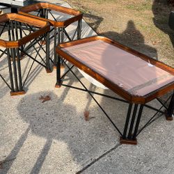 Coffee Table And End Table Set Solid Wood And Iron Glass For End Tables Picked Up Sunday$100Fayetteville, NC