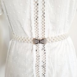 Faux White Pearl Beaded Bow Buckle Elegant Elastic Stretch Evening Waist Belt $25Hope Mills, NC