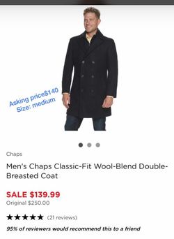 Men’s Black Chaps Classic-fit Wool-Blend Double Breasted Coat.$140Fayetteville, NC