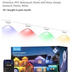 Govee Permanent Outdoor Lights Pro, 100ft with 60 RGBIC LED Lights for Daily and Accent Lighting, 75 Scene Modes for Christmas, IP67 Waterproof, White$350Silver City, North Carolina