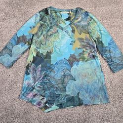 Soft Surroundings Shirt Womens Medium Blue Green Aquaria Tunic Flowers