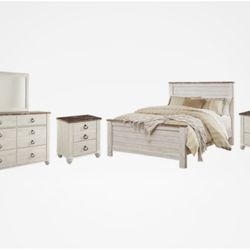 Willowton Queen Panel Bed with Mirrored Dresser and 2 Nightstands$600Raleigh, NC