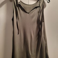 Ann Taylor Loft Solid V-Neck Tank Top in a dark sage green color with a decorative tie at the neck. Size Medium$10Garner, NC