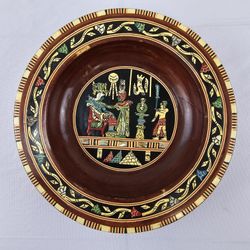 Vintage 8.5” Egyptian Wood Decorative Plate with Mother of Pearl Inlay$30Durham, NC
