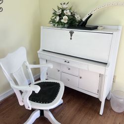 Antique Desk With Chair White Distressed Wood$150Raleigh, NC