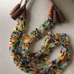 Bohemian Multi Colored Necklace, Beaded Necklace, Statement Necklace, Multi-Strands Necklace, Adjustable Cord, Leather Cord Necklace, L$30Apex, NC