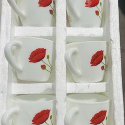 6-Piece Ceramic Espresso Cups Set – Floral Design, White, New in Box$10Huntersville, NC