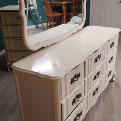 Vintage White Dresser and Mirror And Drawers$100Shelby, NC