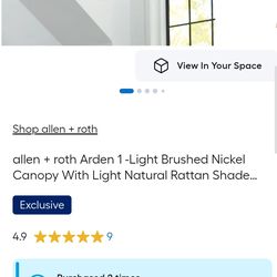 Allen + roth Arden 1 -Light Brushed Nickel Canopy With Light Natural Rattan Shade Transitional Rattan Cage Dome Medium Hanging Pendant Light$60Lake Wylie, SC