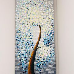 🎨 Hand-Painted 3D White Flower Tree AbstractPainting – 48x24 Inch 🌿✨$70Charlotte, NC