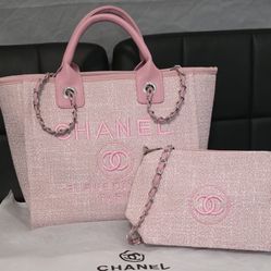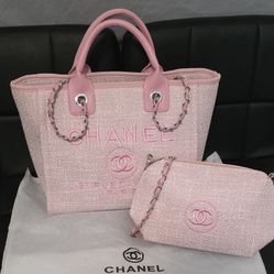 Chanel Deauville Tote Bag with Matching Pouch in Pink Tweed and Leather$2,500Charlotte, NC