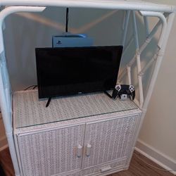 White Wicker TV Stand With Lower Storage Cabinet $85Matthews, NC