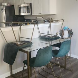 Glass Dinner Table With Brass Colored Hardware And Green Velvet Chairs$300Charlotte, NC