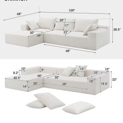 109" Sectional Sofa for Living Room, Modern Upholstered L-Shaped Sofa Couch with Chaise Lounge, Modular Sofa with Pillows for Home Office (White)$350Charlotte, NC