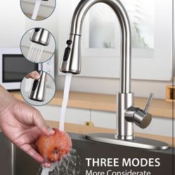 Kitchen Sink Faucet with Pull Down Sprayer with Deck Plate, Brushed Nickel High ArcFaucet, Stainless Steel Modern RV Bar Sink Faucets for Pot Filler, $30Greensboro, NC