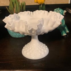 VINTAGE FENTON HOBNAIL MILK GLASS RUFFLED EDGE PEDESTAL CANDY DISH COMPOTE$15Lexington, NC