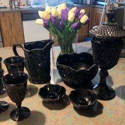 Vintage Tiara Cameo Black Indiana Glass Diamond Point Goblets Vintage Tiara Cameo Black Indiana Glass Diamond Point Set $225Lexington, NC
