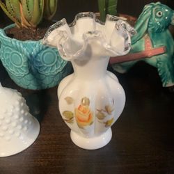 Fenton Milkglass Silver Crest Vase With Yellow Design$25Lexington, NC